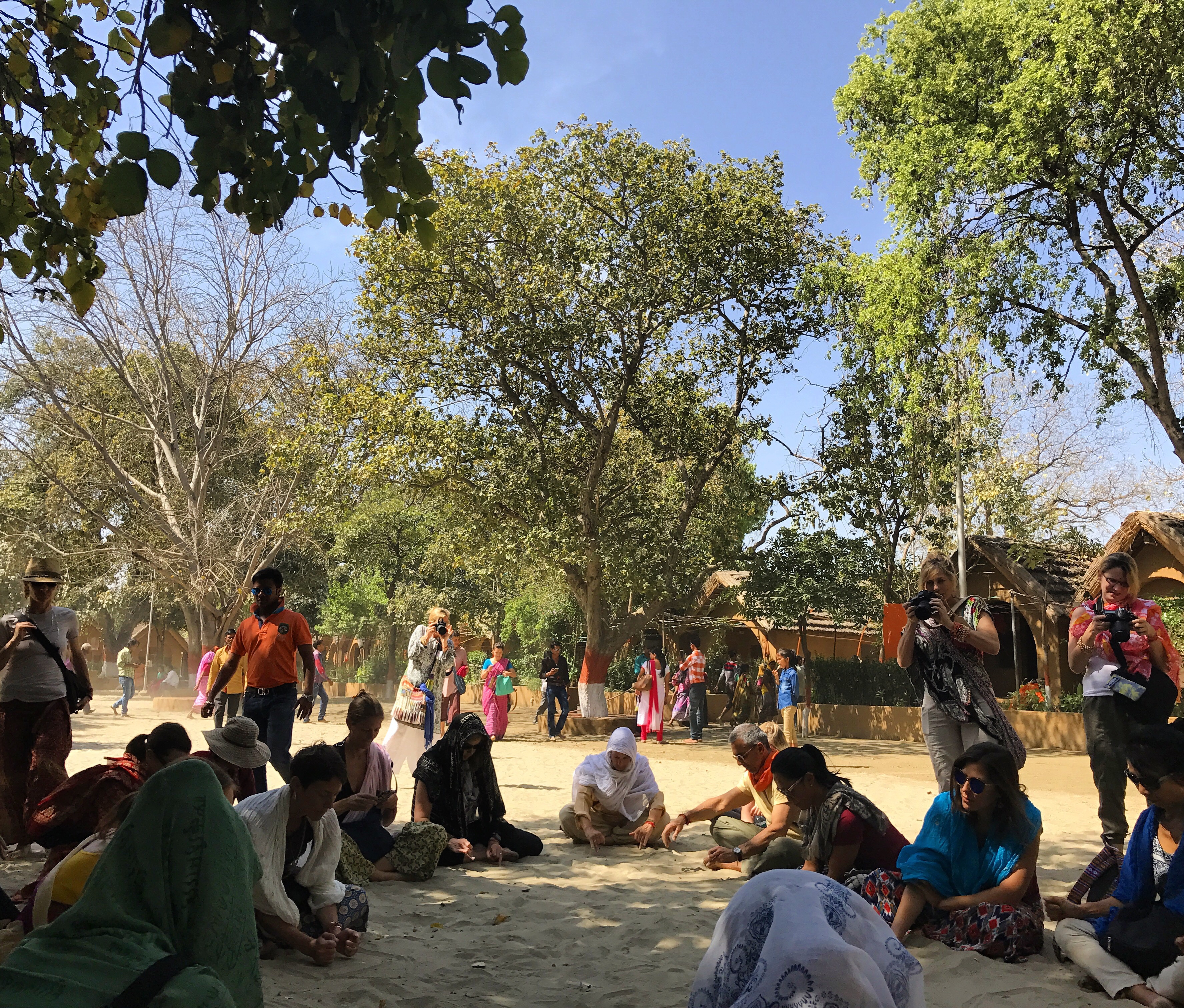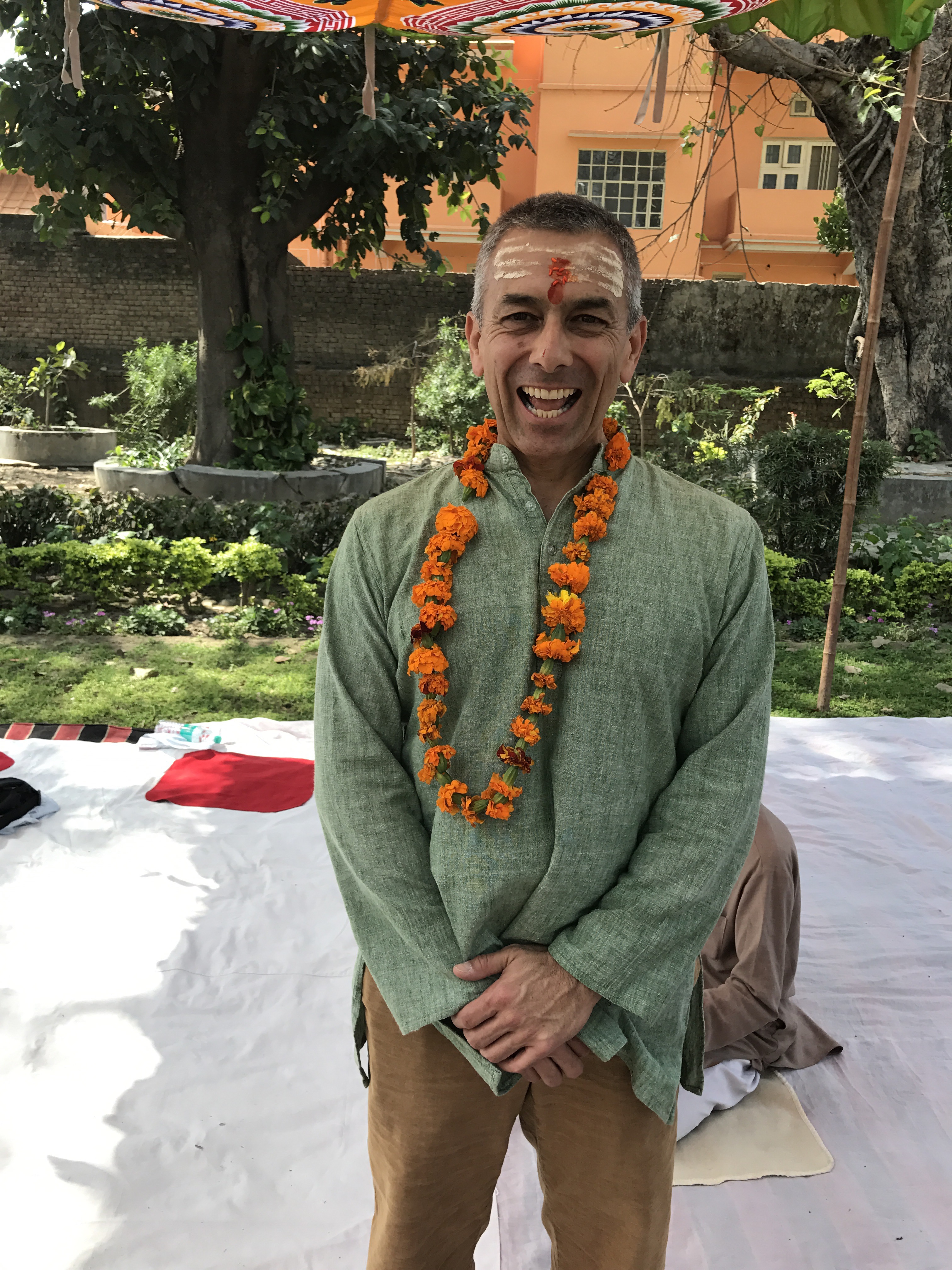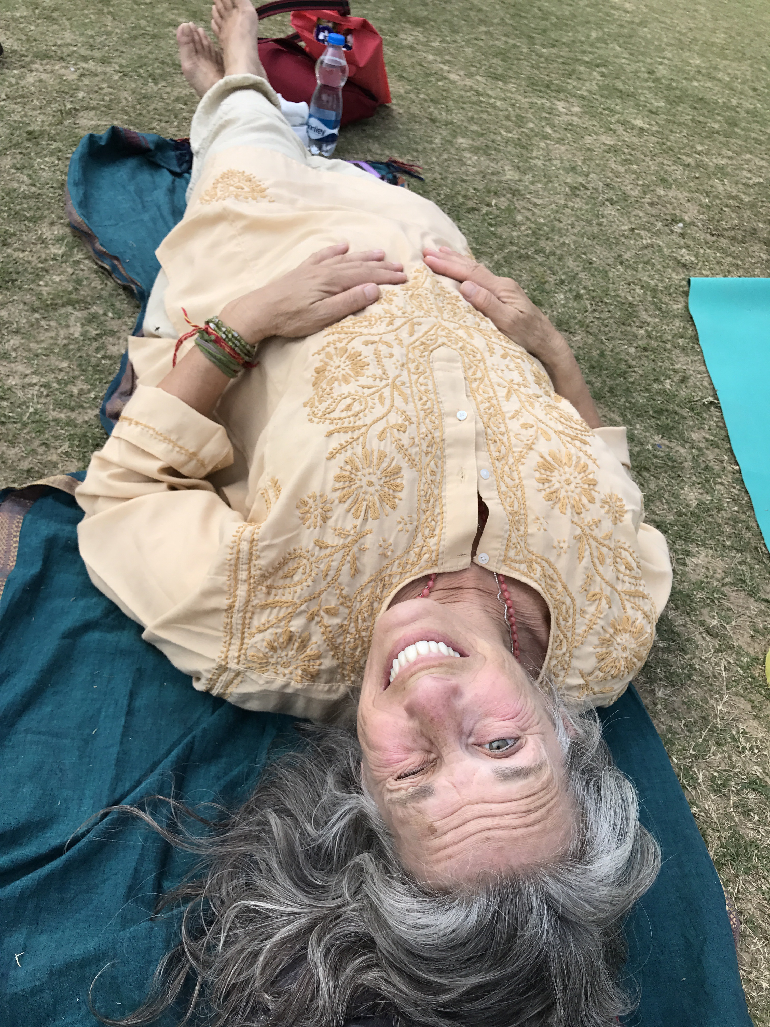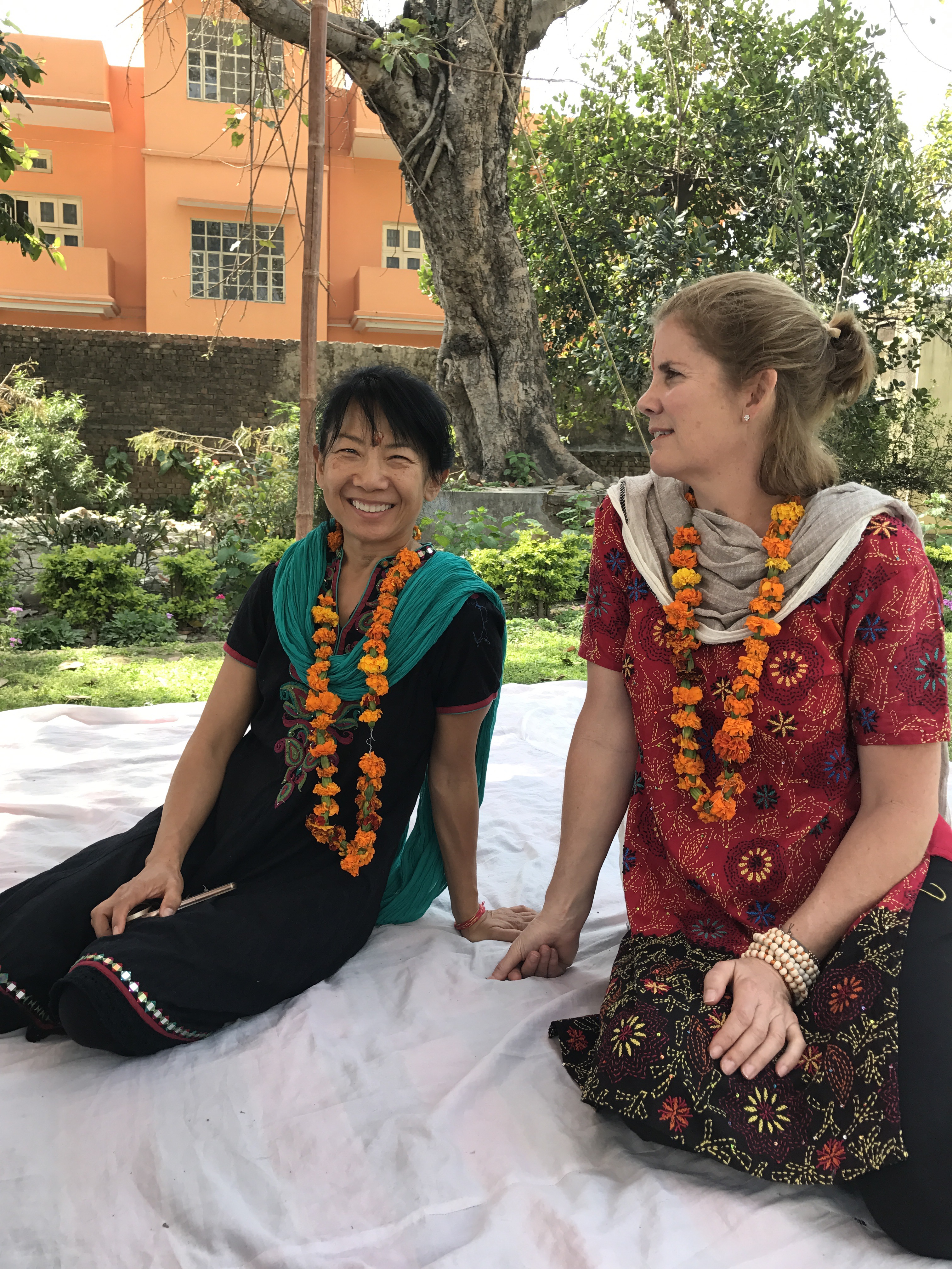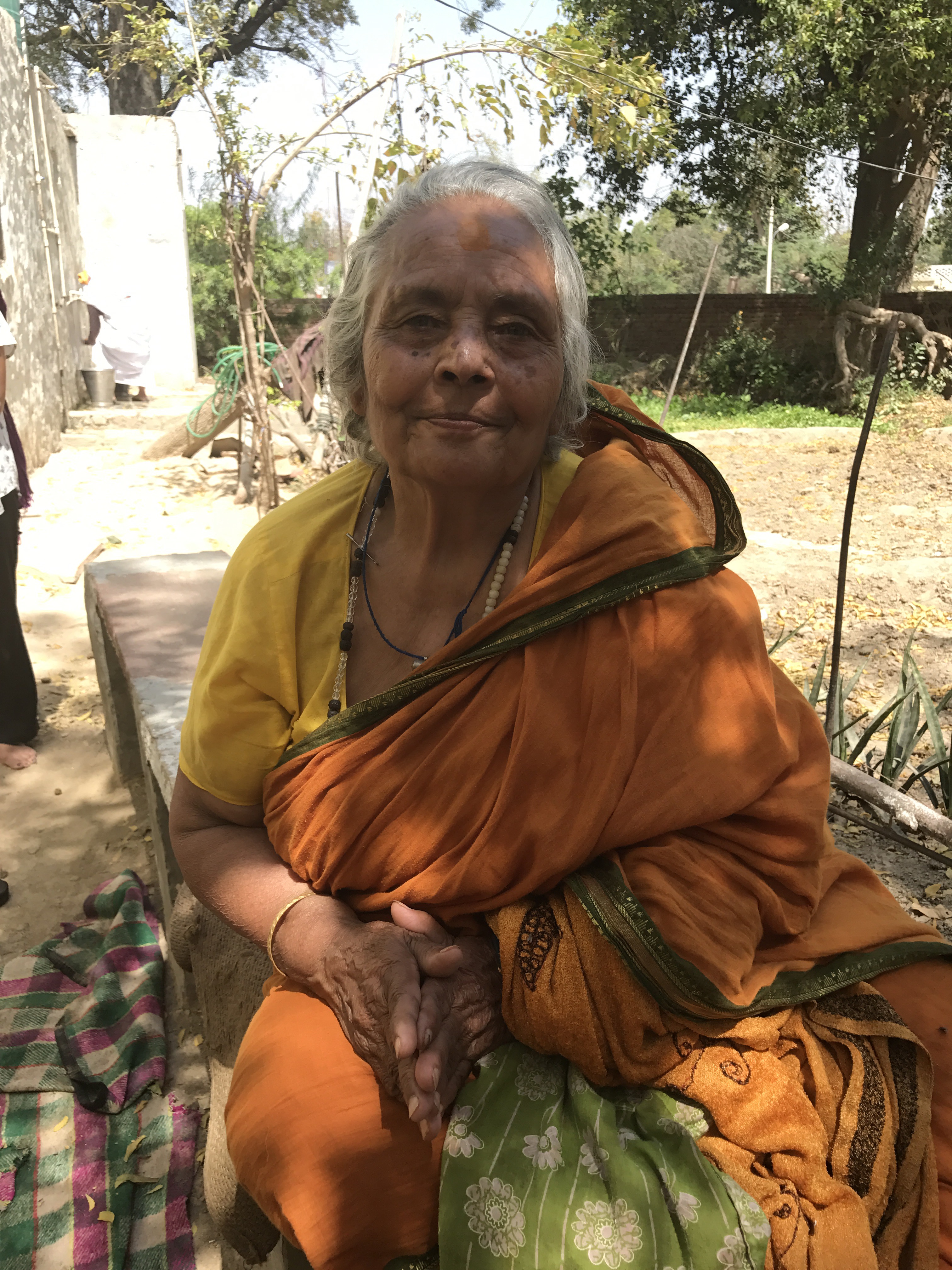 One morning we went to the Ashram of Neem Karoli Baba in Vrindavan. It opened my heart to tears of love and joy. I brought my friends Srutih, Carol, and Jana there with me in my heart as I walked in.  I fed the baby cows with everyone, and then sat and meditated in the room where Neem Karoli Baba stayed. I am new to meditation. There I was, calm and grounded. I saw visions of blue water everywhere like the Pacific Ocean was all around me. I didn’t want to leave that room. That morning something shifted. I was open and present with myself in a way I never had been before. I’m not a person that believes in gurus. I believe in myself.  In that place I could feel the overwhelming love and acceptance of a light being, and the love that oozes everywhere in that city.