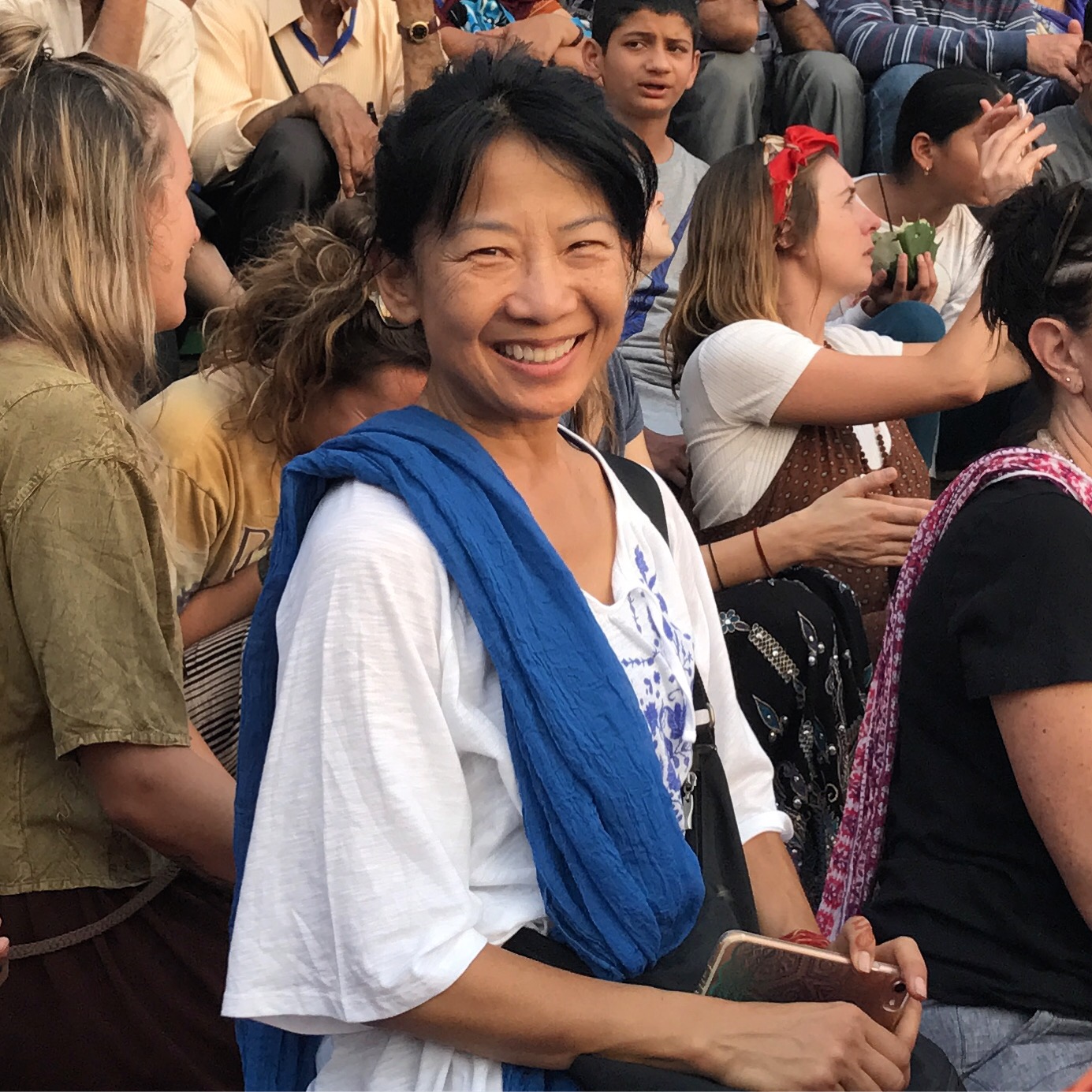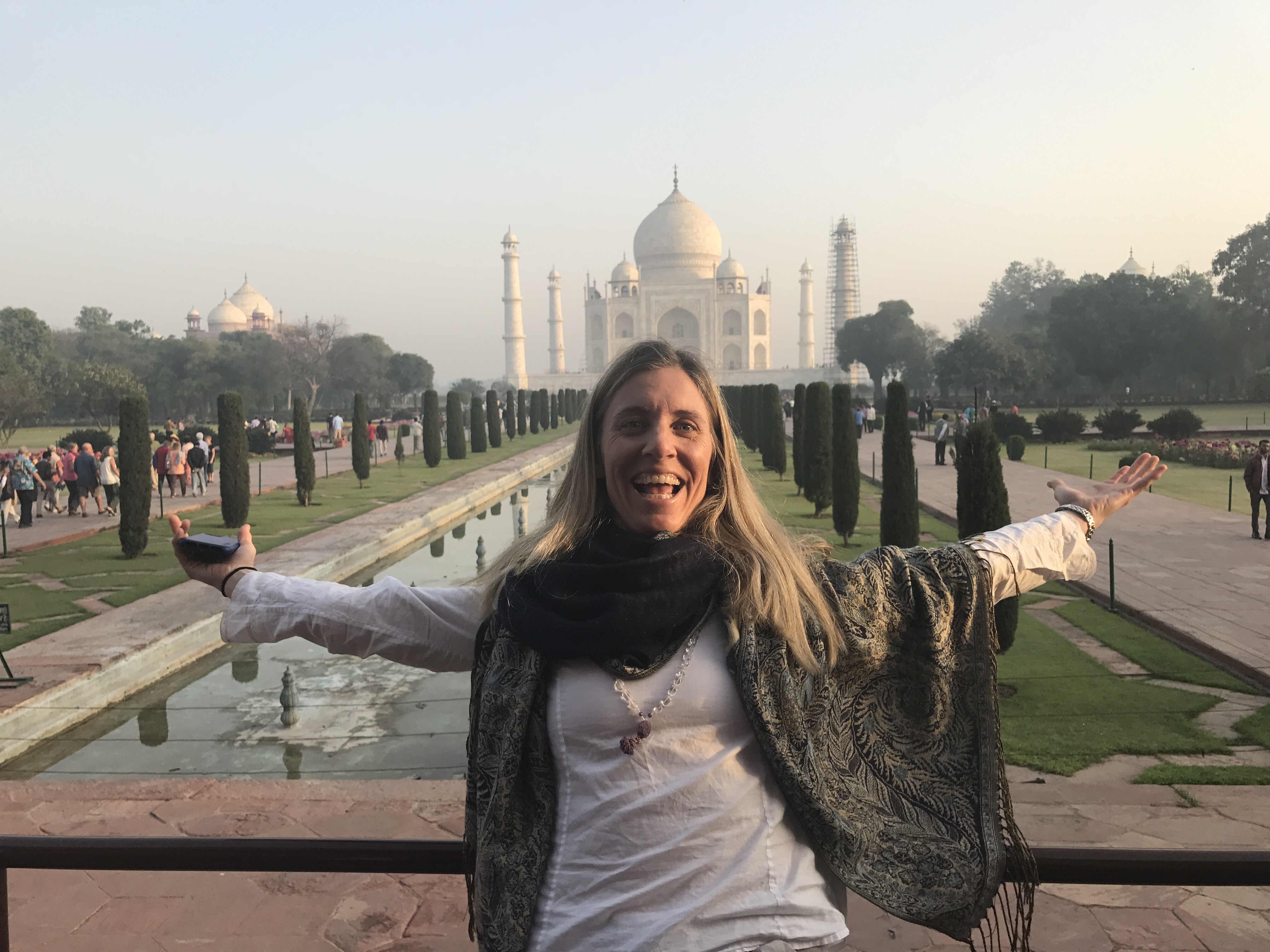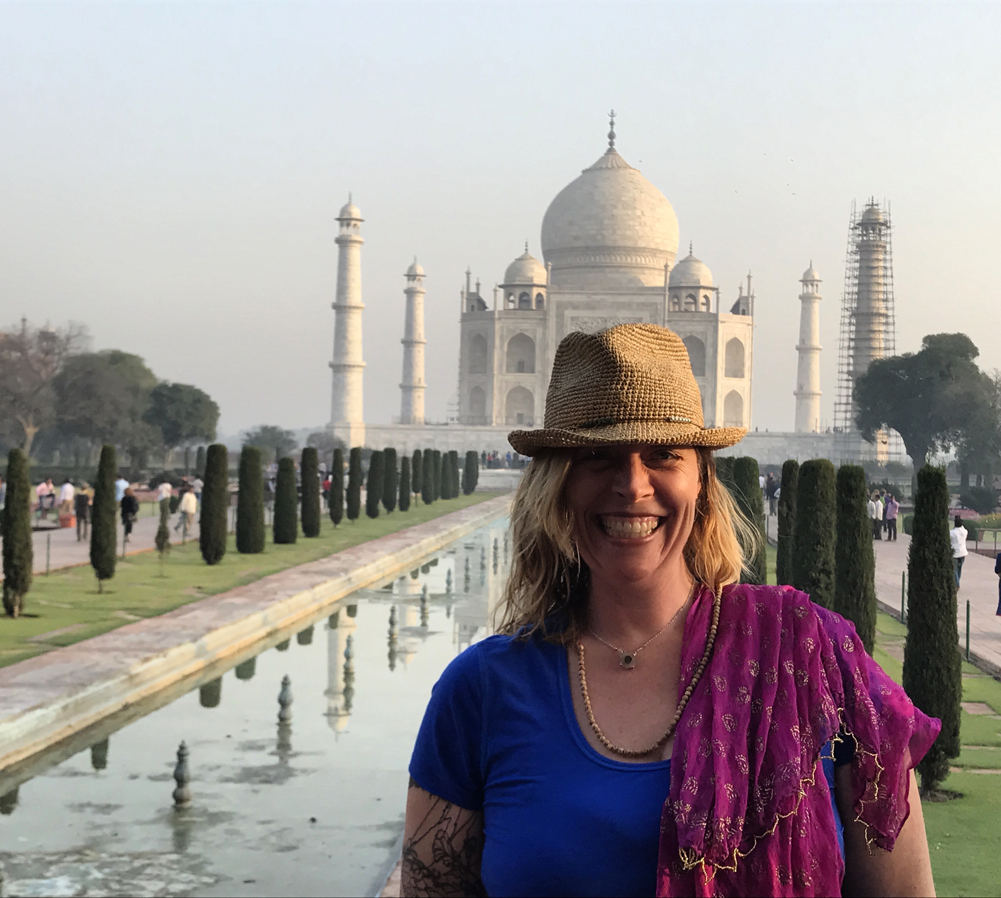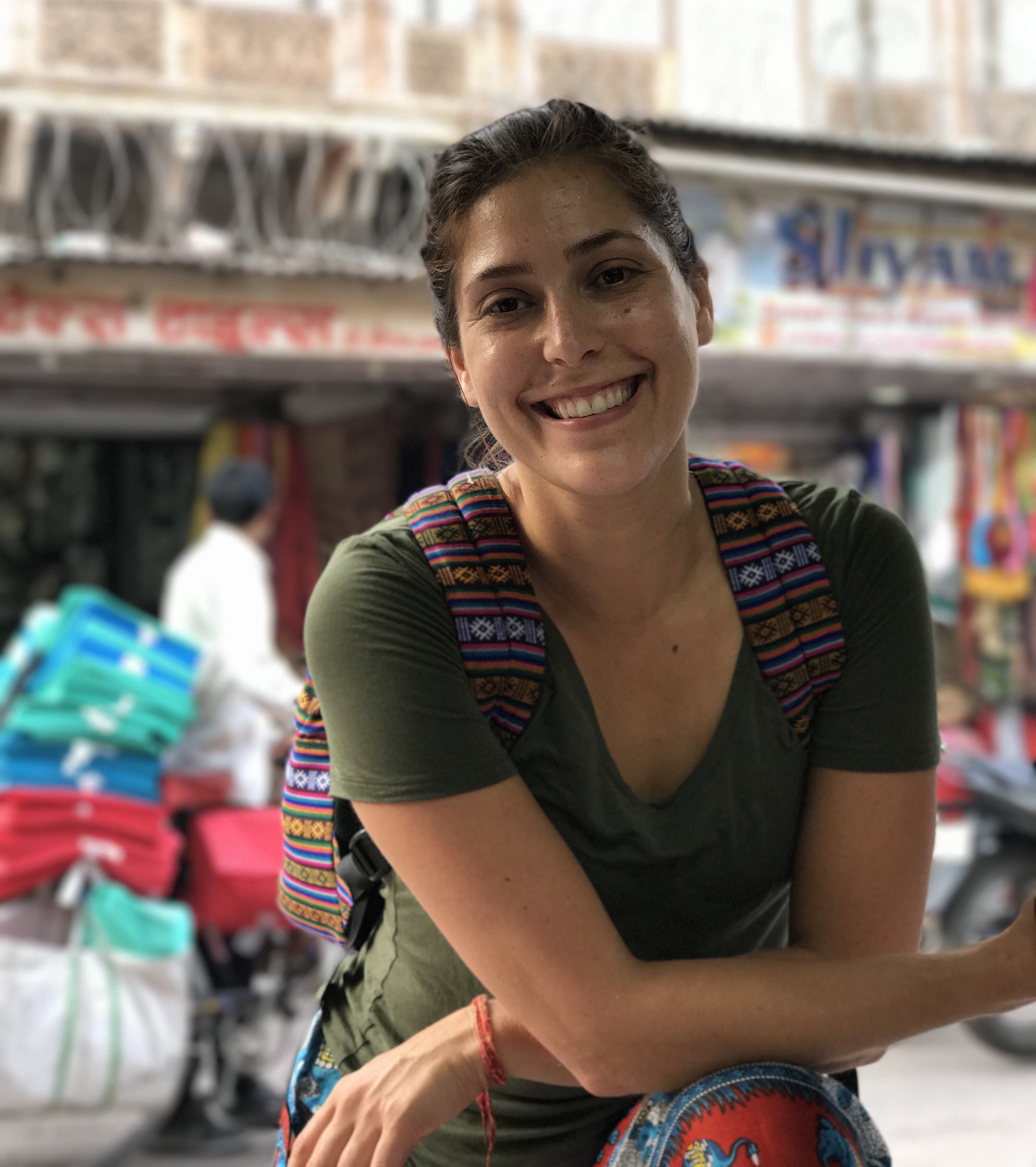 One morning we went to the Ashram of Neem Karoli Baba in Vrindavan. It opened my heart to tears of love and joy. I brought my friends Srutih, Carol, and Jana there with me in my heart as I walked in.  I fed the baby cows with everyone, and then sat and meditated in the room where Neem Karoli Baba stayed. I am new to meditation. There I was, calm and grounded. I saw visions of blue water everywhere like the Pacific Ocean was all around me. I didn’t want to leave that room. That morning something shifted. I was open and present with myself in a way I never had been before. I’m not a person that believes in gurus. I believe in myself.  In that place I could feel the overwhelming love and acceptance of a light being, and the love that oozes everywhere in that city.