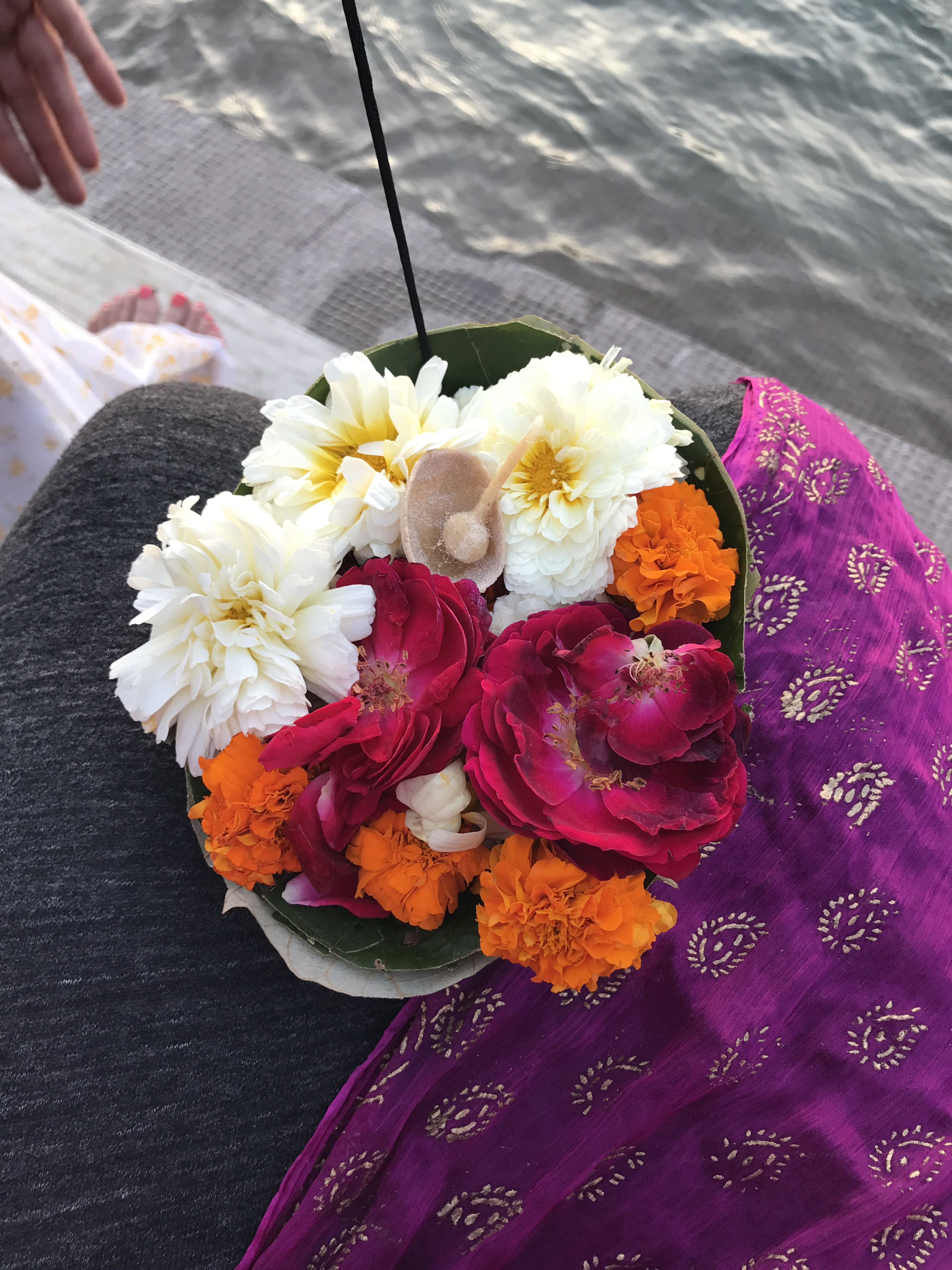 The sunset that night was spectacular. I was so happy to be with my pod of friends enjoying the magic hour and sending offerings of flowers and light to the Ganga. This aarti was relaxed and intimate and the ritual of rising with the sun with devotion and saying goodnight to it as well slowed down time.
