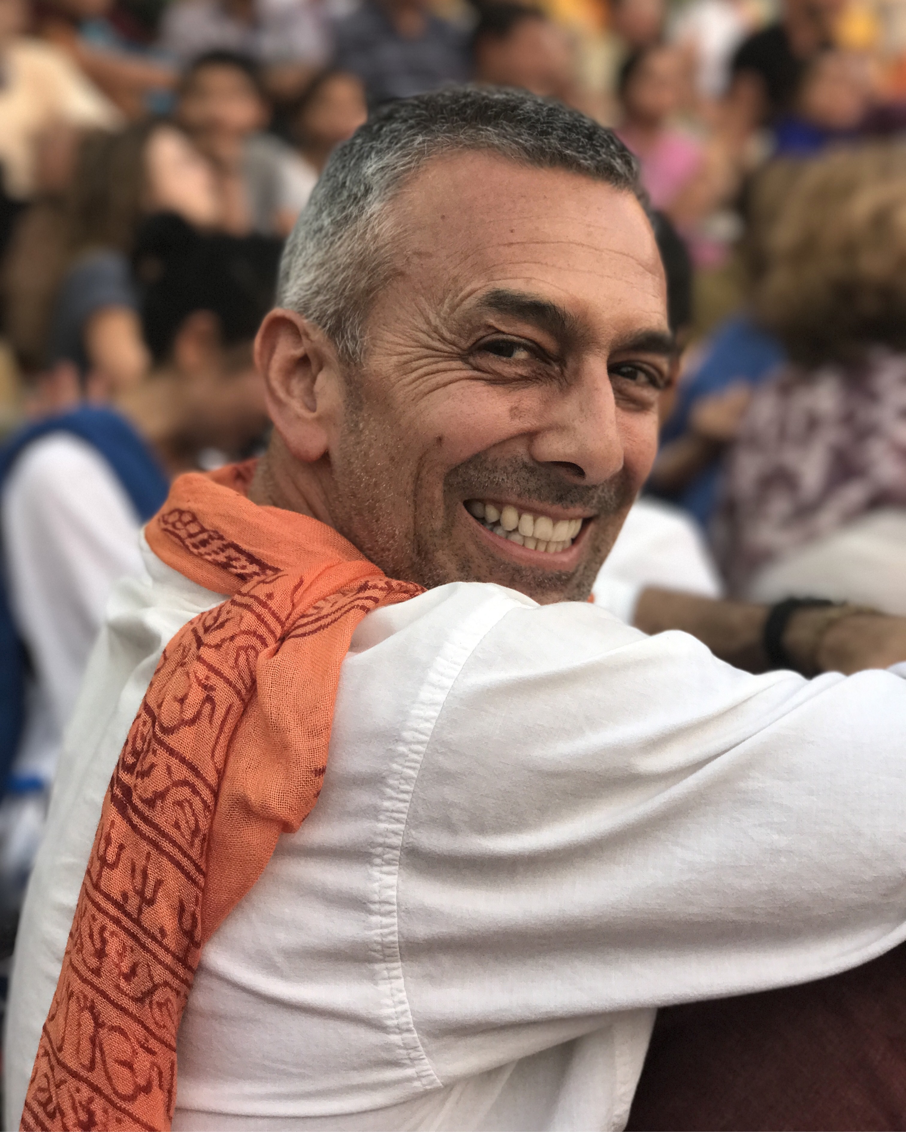 Vrindavan was filled with beauty and chaos. Throughout the day and night there were so many things happening. My senses were inundated with smells of chai, burning ash, incense, flowers, delicious food being made at all hours of the day, and garbage.  Sounds of monkeys fighting, honking horns, people chanting, bells, and laughing children. The feel of satin scarves and beautiful rosewood Malas, combined with visions of cows wandering into stores to be fed breakfast, the brillant gopi skirts, flames at the aarti on the Yamuna river, and the smiling eyes of the open Indian people.