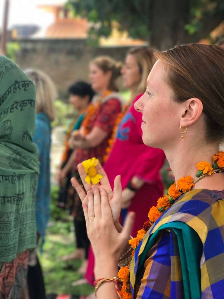 The sunset that night was spectacular. I was so happy to be with my pod of friends enjoying the magic hour and sending offerings of flowers and light to the Ganga. This aarti was relaxed and intimate and the ritual of rising with the sun with devotion and saying goodnight to it as well slowed down time.